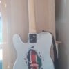 Nine guitars for the ‘Elle’s Guitars’ charitable initiative in nine days, day three. Thanks to a fault in the tremolo block, I nearly had to unveil them out of order and do #4 today. Fortunately, my repair job took me less time than expected. So here we have Nairobi Nine #3 – the Fallout Nuka Quantum strat. Another bag of bits, this one even needed a new neck, so I’m not sure how much of it could honestly be called the original donor guitar any more.