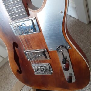 DR003 is an acoustic Jubilee special! A repaired and refitted no-name Chinese Ovation-style fibre-glass moulded-back electro-acoustic, it has received a new set of easy-to-use locking tuners, a new internal pickup, and a pink gloss spray finish. There’s a Sex Pistols sticker or three on the front, as it’s been named “God Save The Queen (No Fuchsia)” and will be rocking in the free world out of here for just £99.