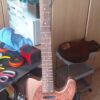 Deez nuts – the nuts for the oddly-sized pots on this Les Paul finally arrived. Whilst every ‘Elle’s Guitar’ is designed to have a free spirit and be quirky and individual, I thought I’d best include another ‘grown up’. This Les Paul is the most complicated three-into-one mismatched jigsaw I’ve done yet. A kit body was combined with the neck and pickups from one donor and the wiring loom and tuners from another. It’s stained ebony with a matt black back and mirrored pickguard, with a discreet nod to its new home – that’s a Kenyan Air Force roundel as the rear switch cover.