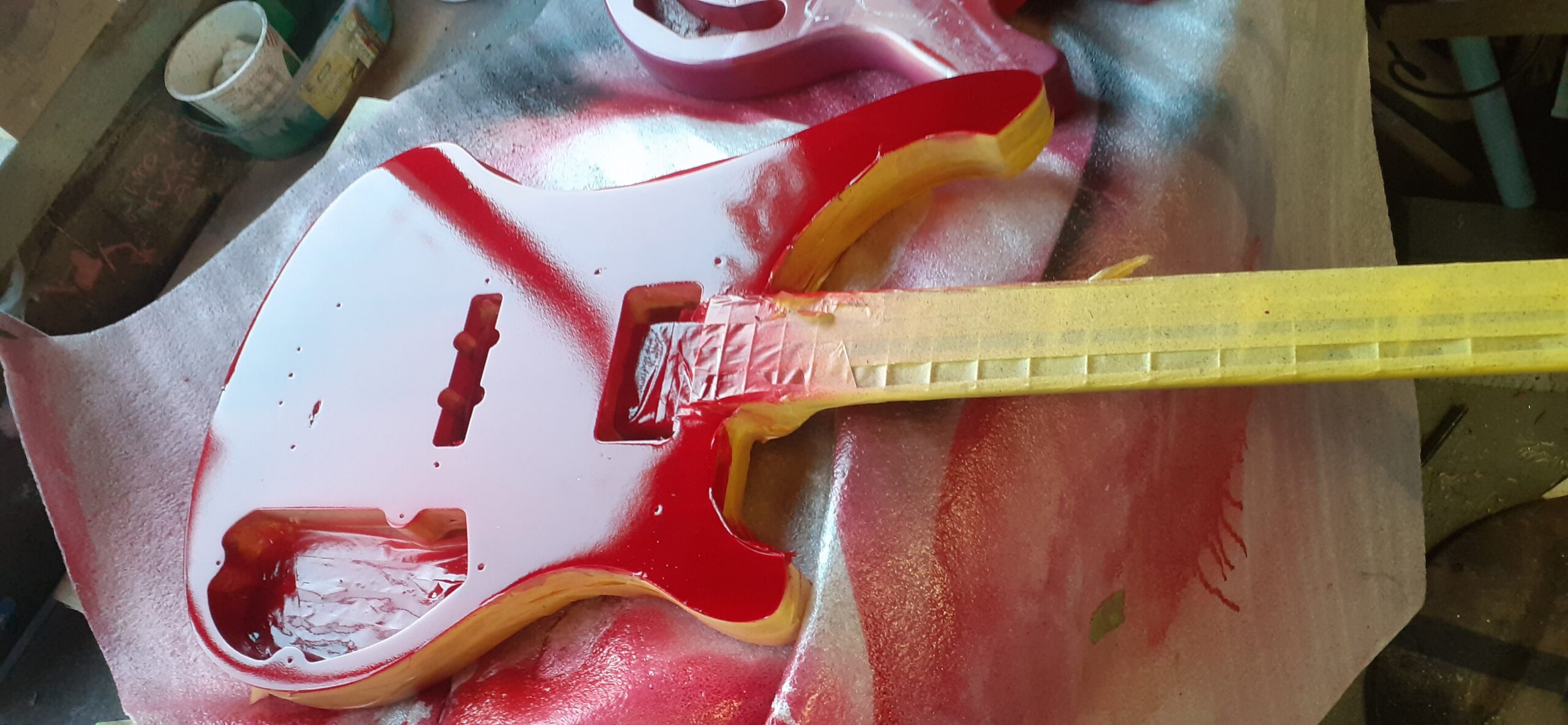 DG2402: ‘Rickenbacker 4001’-style bass guitar. Candy Red high-gloss finish, ash back with white binding & set neck. £399.