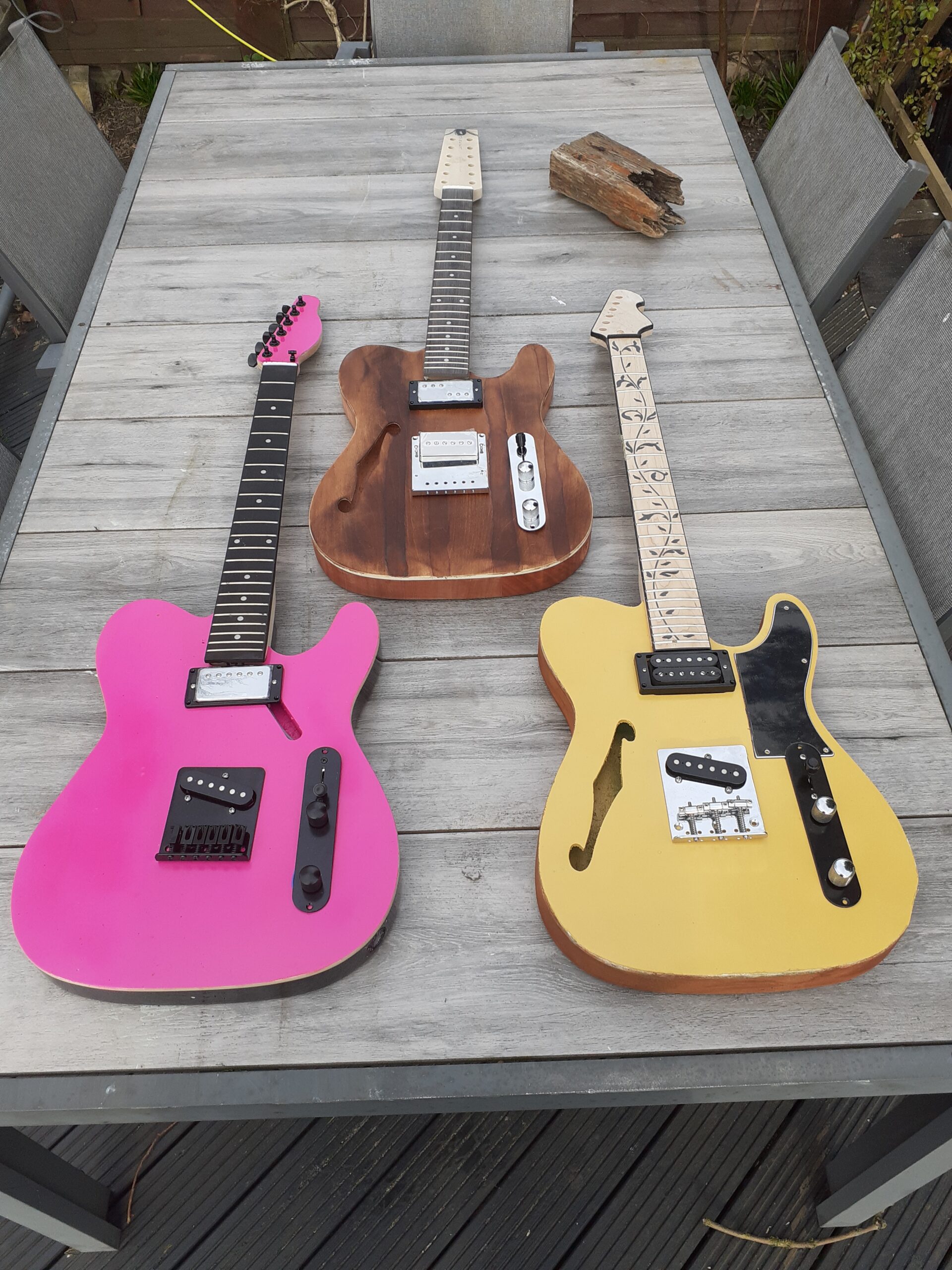 So over at Derelict Heights, in today’s edition of “What’s On Yer Bench, Mensch?” it’s all gone a bit Teletastic. Including first looks at “Méchant Monsieur Moutarde” and ” The Twelve Labours of Honeybees”. “The Fuchsia Ain’t What It Used To Be” is nearly finished, just waiting on its pickguard to be delivered, as I forgot that I’d cannibalised the one earmarked for it to cut down into a small cabronita-style pickguard.